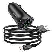 Автомобільний зарядний пристрій Hoco NZ6 PD45W 3-port(2C1A) car charger set(Type-C to Type-C), Black