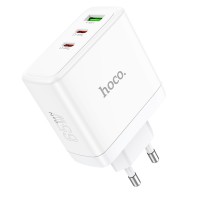 Мережевий зарядний пристрій Hoco N30 Glory PD65W three-port(2C1A) fast charger set(Type-C to Type-C)(EU), White